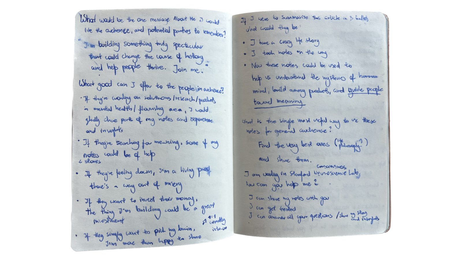 Over the last 6 years, I’ve written 11,000+ pages of personal journals, creating a detailed transcript of my mind’s content.