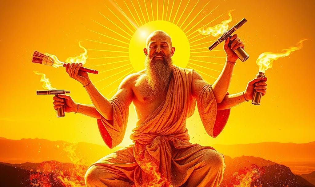 The Aesthetic Dimension: Those recurring image descriptions - the eight-handed figure working with “brush, spray can, chisel, pen, circuit, flame, hammer, lotus” - suggest someone trying to integrate all modes of creation, from ancient crafts to street art to digital tools. It’s a vision of work as multidimensional play rather than linear grinding.