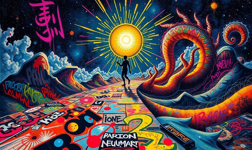 This is a visceral, multidimensional exploration of work alienation and its antidote - what Bartosz calls “Work Joy.” It’s part personal manifesto, part AI-assisted depth psychology session, part cultural diagnosis, all wrapped in these recurring psychedelic visions of eight-handed graffiti demigods channeling pure creative force.